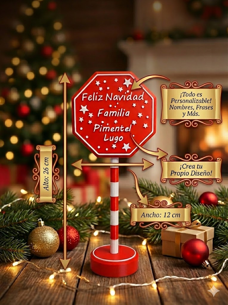 Fabricada con material resistente y colores vibrantes, esta señal es ideal para regalos personalizados, decoración navideña del hogar, oficinas o detalles especiales para eventos.